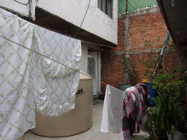 Here is where my grandma hangs the clothes she washes. The cat peed in the bed, so she had to wash the sheets.